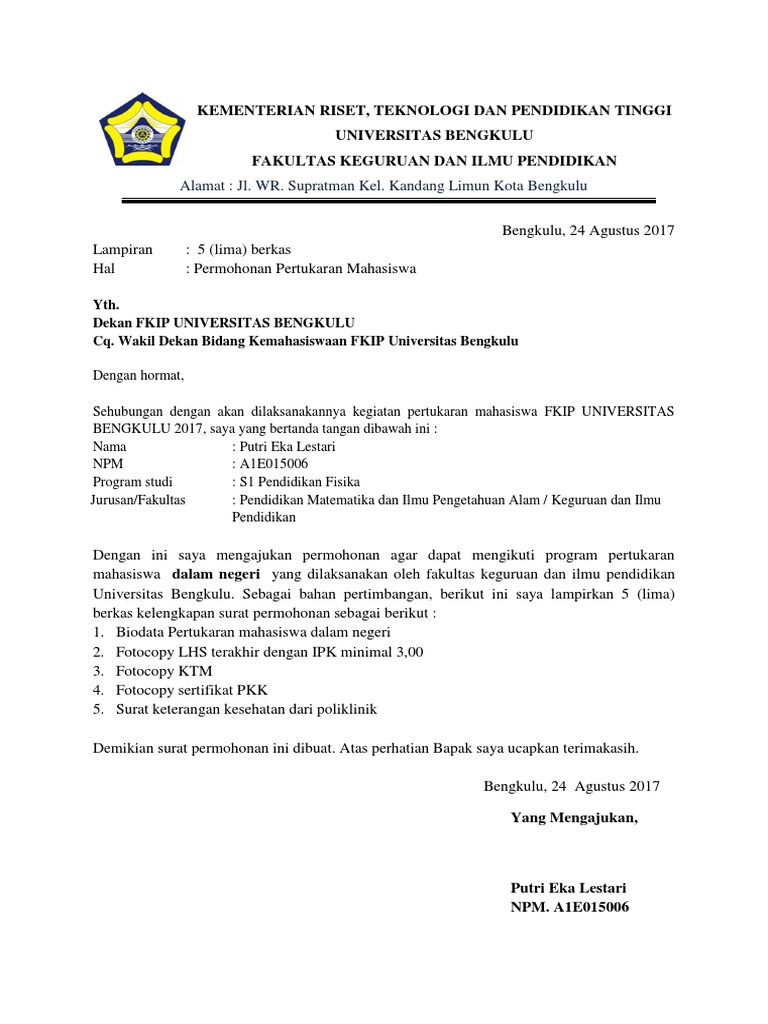 Surat Pertukaran Mahasiswa Pdf
